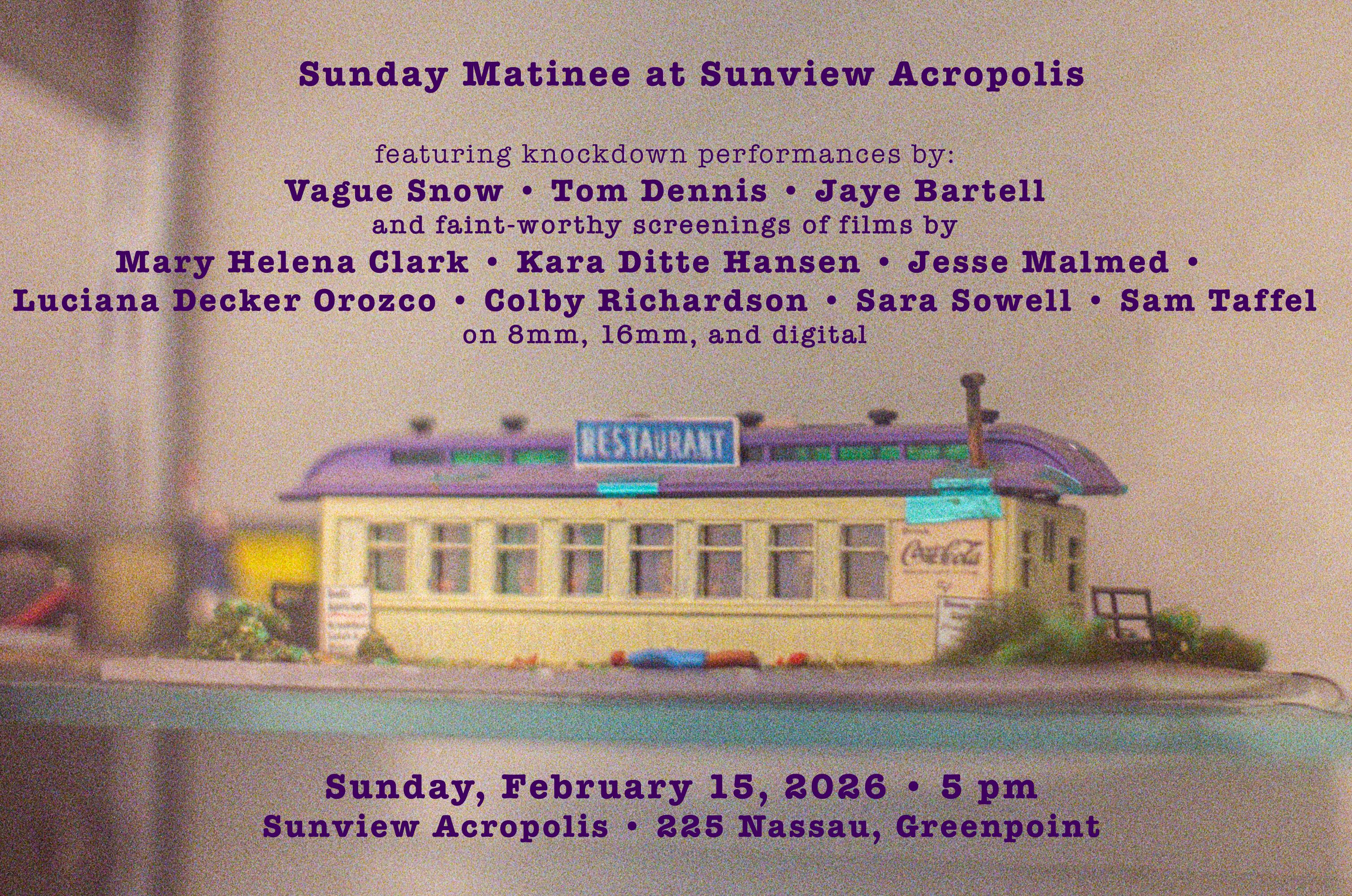 The Sunview Luncheonette is a co-operative, a storefront on pause, a member-based social club, a sometimes microvenue for art, poetics, regionalism, mutual aid, and commoning. It floats above the second largest oil spill in US history, down the street from an active EPA Superfund site. It is resistant to traditional forms of commerce, commodification, and to gentrification. It is above all, an “approach,” and least of all, an “outcome.” It is unknown. It is hopeful. It saves you a seat at the counter.