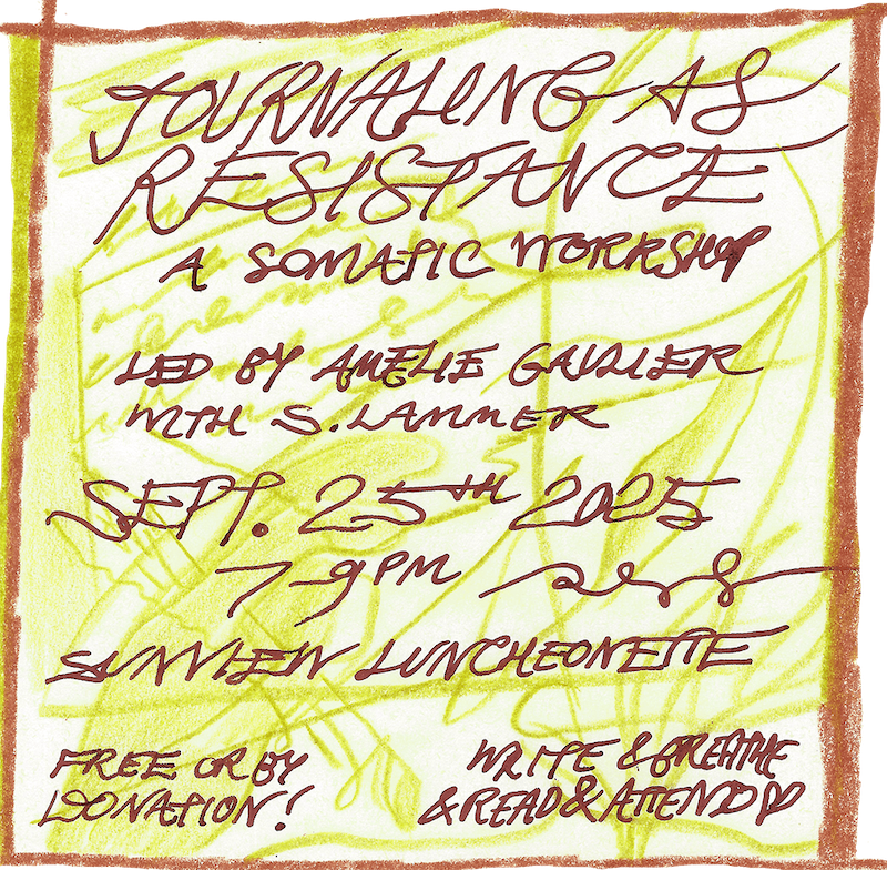 We warmly invite you to join us for the third gathering of Journaling as Resistance, a workshop series weaving together journaling and somatics practices to explore internal accountability, decolonial repair, and global solidarity.