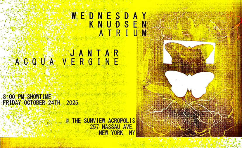 Double album-release show on Friday, Wednesday Knudsen performs on the occasion of Atrium’s release on Feeding Tube, Jantar performs and releases Acqua Vergine on SLSC.